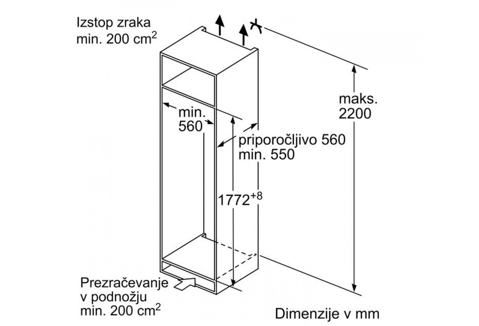 - Dimenzije niše (VxŠxG): 1775.0 x 560 x 550mm