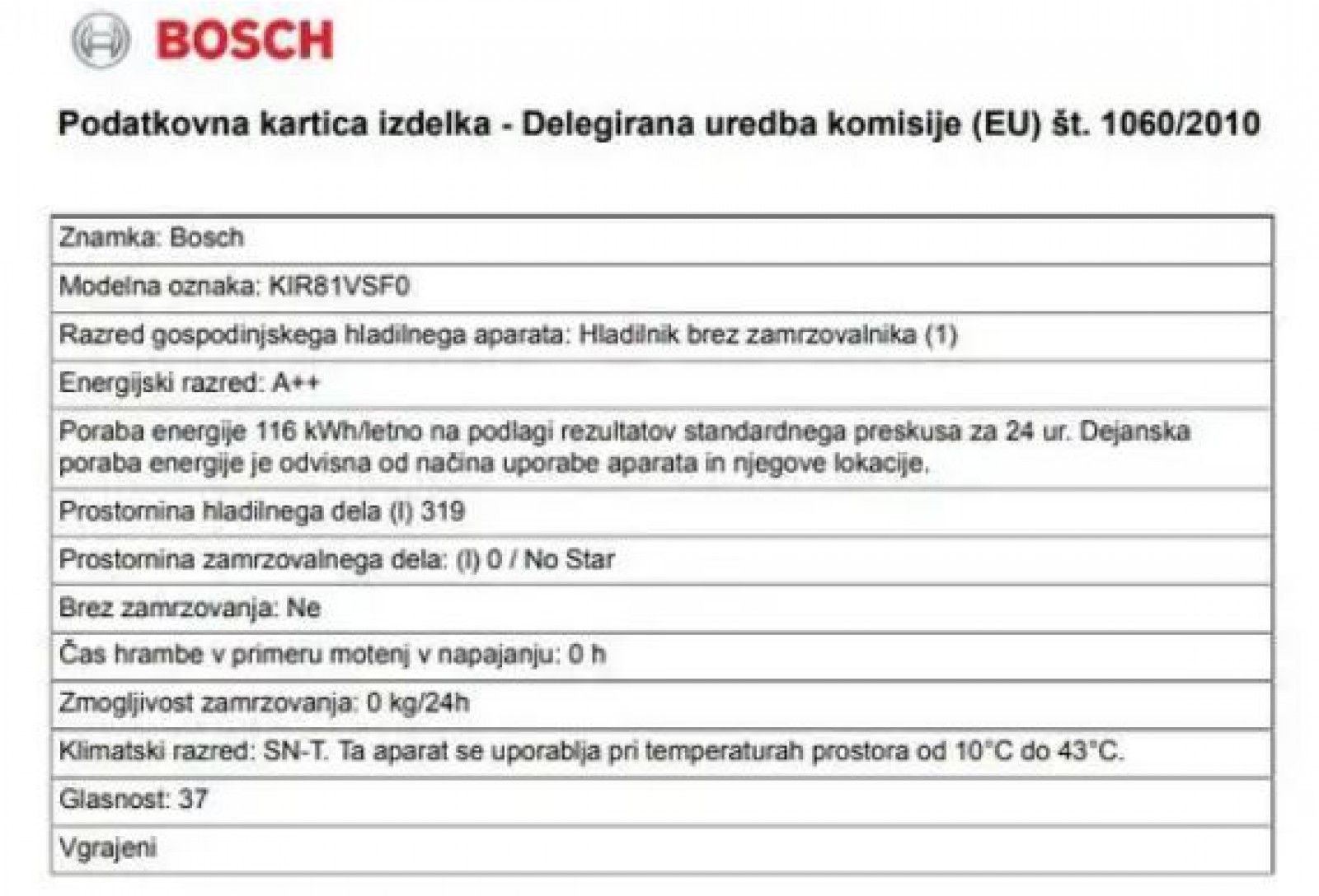 - Poraba energije: 116 kWh letno