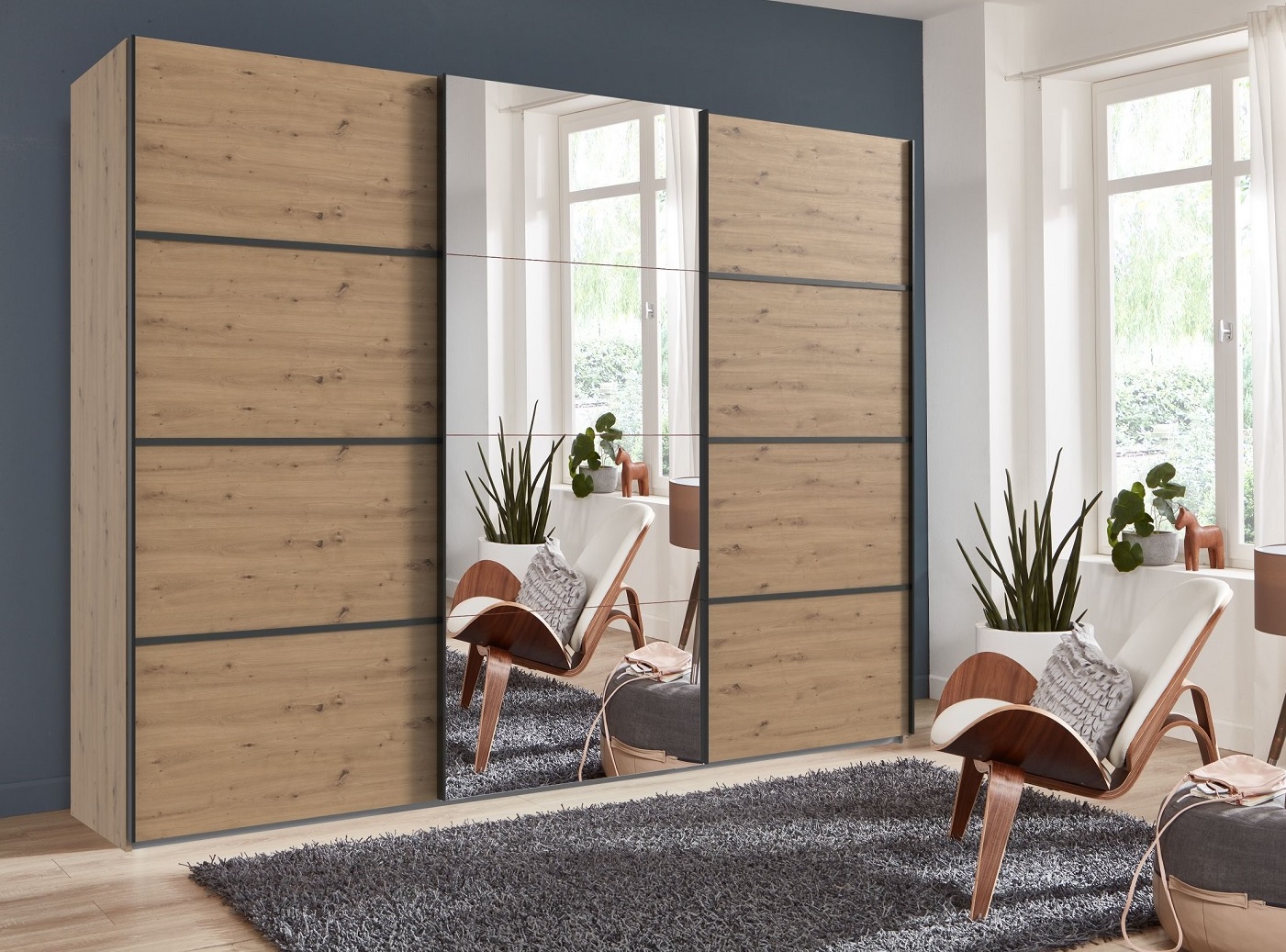 Ta omara z drsnimi vrati ponuja prav to. Predali ponujajo dodatne možnosti shranjevanja, na primer za nogavice in spodnje perilo. Nastavljive police ponujajo maksimalno prilagodljivost. Tako se lahko sami odločite, kako visoki naj bodo posamezni predali.