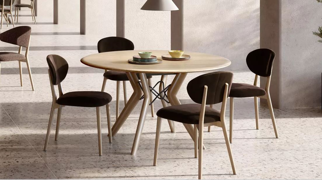 Ta okrogla miza Trava iz masivnega hrasta, zasnovana posebej za opremljanje delovnega prostora ali jedilnice.