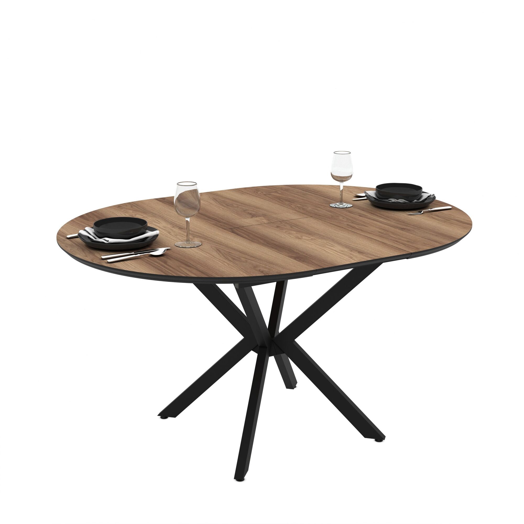 Dimenzije: 110 x 110 x 76 cm z možnostjo podaljšanja mize vse do 145 x 110 x 76 cm