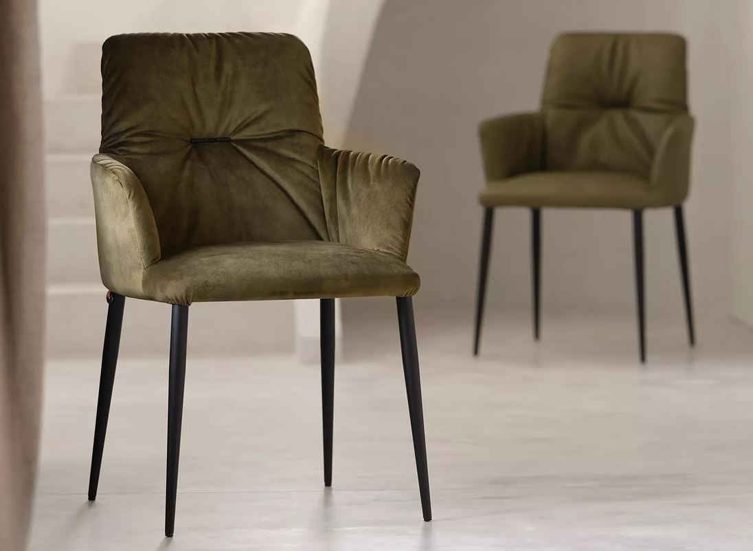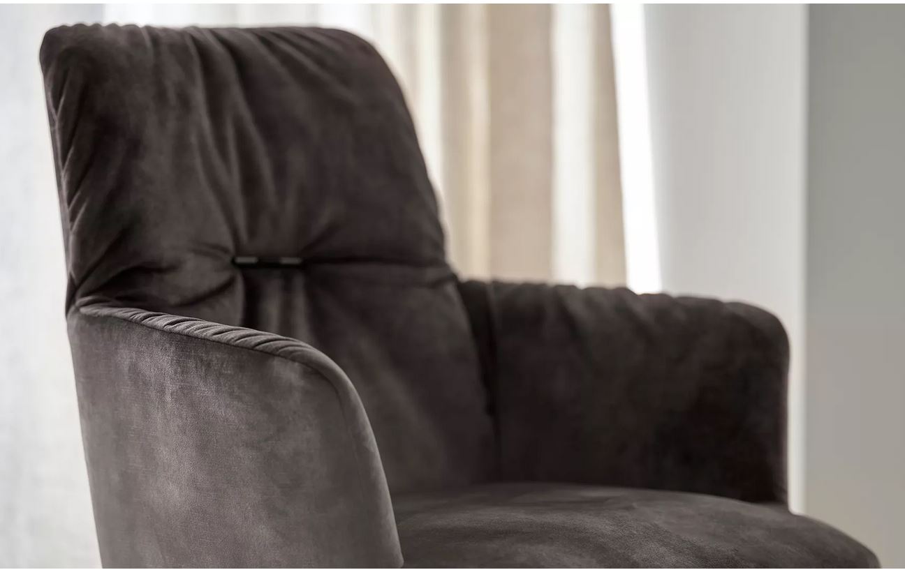 Njegove zelo preproste linije in njegova funkcionalna narava naredijo prostor za najpomembnejšo od vseh funkcij: vaše udobje. Njegovo z vato podloženo hrbtišče vas vabi k sprostitvi. Njegove lesene ali kovinske stožčaste noge mu dajejo diskreten pridih elegance.