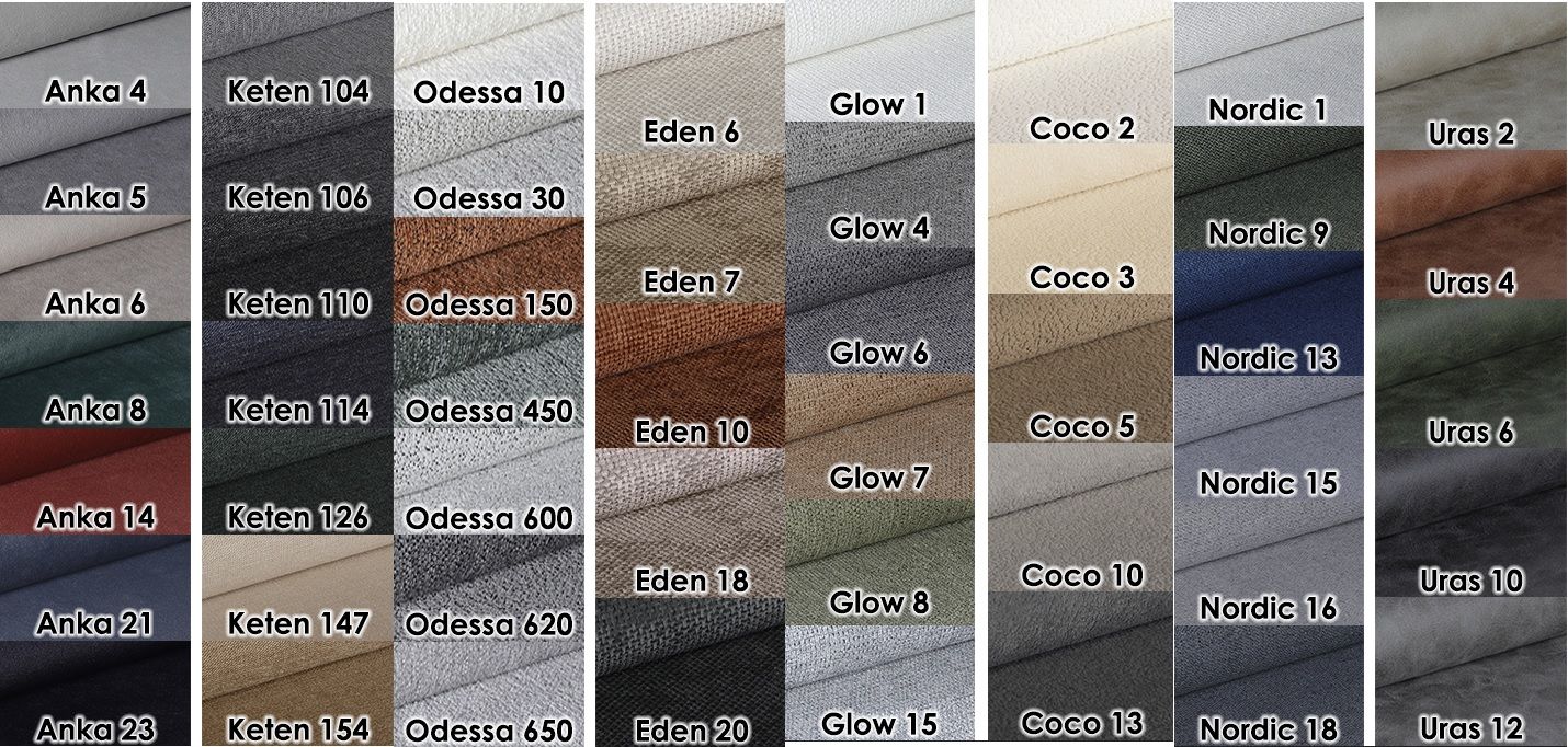 Ogrodje iz MDF 18 mm. Stol vzmeten Z BOX SPRING VZMETENJEM + pena, oblazinjeno s tkanino.