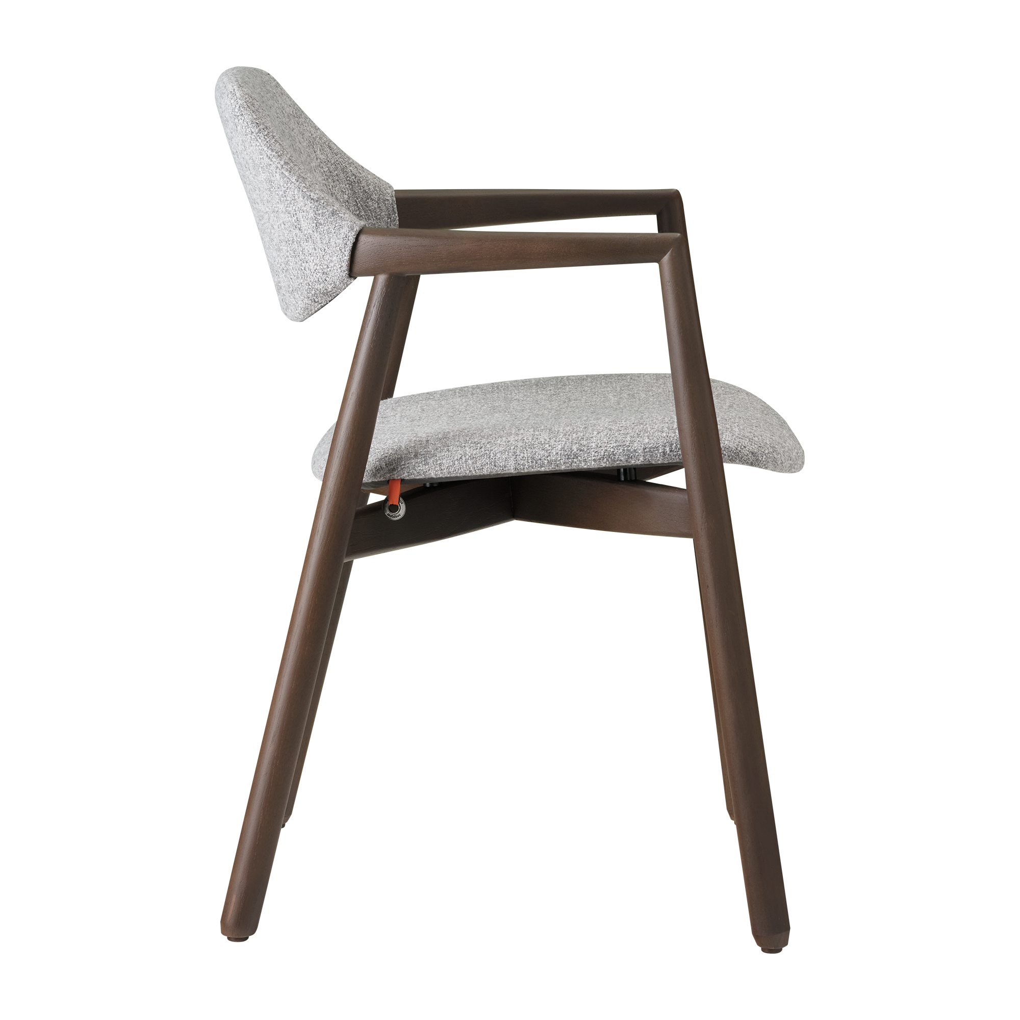 Vitki nasloni za roke stola Knut C02, se elegantno zožujejo proti sprednjemu delu in se brezhibno zlijejo z lesenim okvirjem in tvorijo organsko celoto – detajl, zaradi katerega je stol edinstven in poudarja njegovo prefinjeno izdelavo.