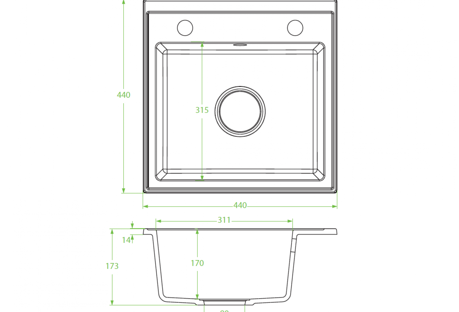 Granitno pomivalno korito Kuchinex Nastka 510T