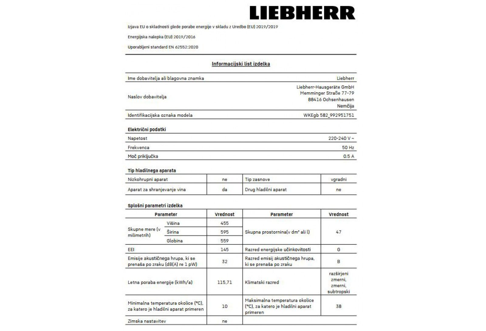 Libherr vinska vitrina WKEGB 582