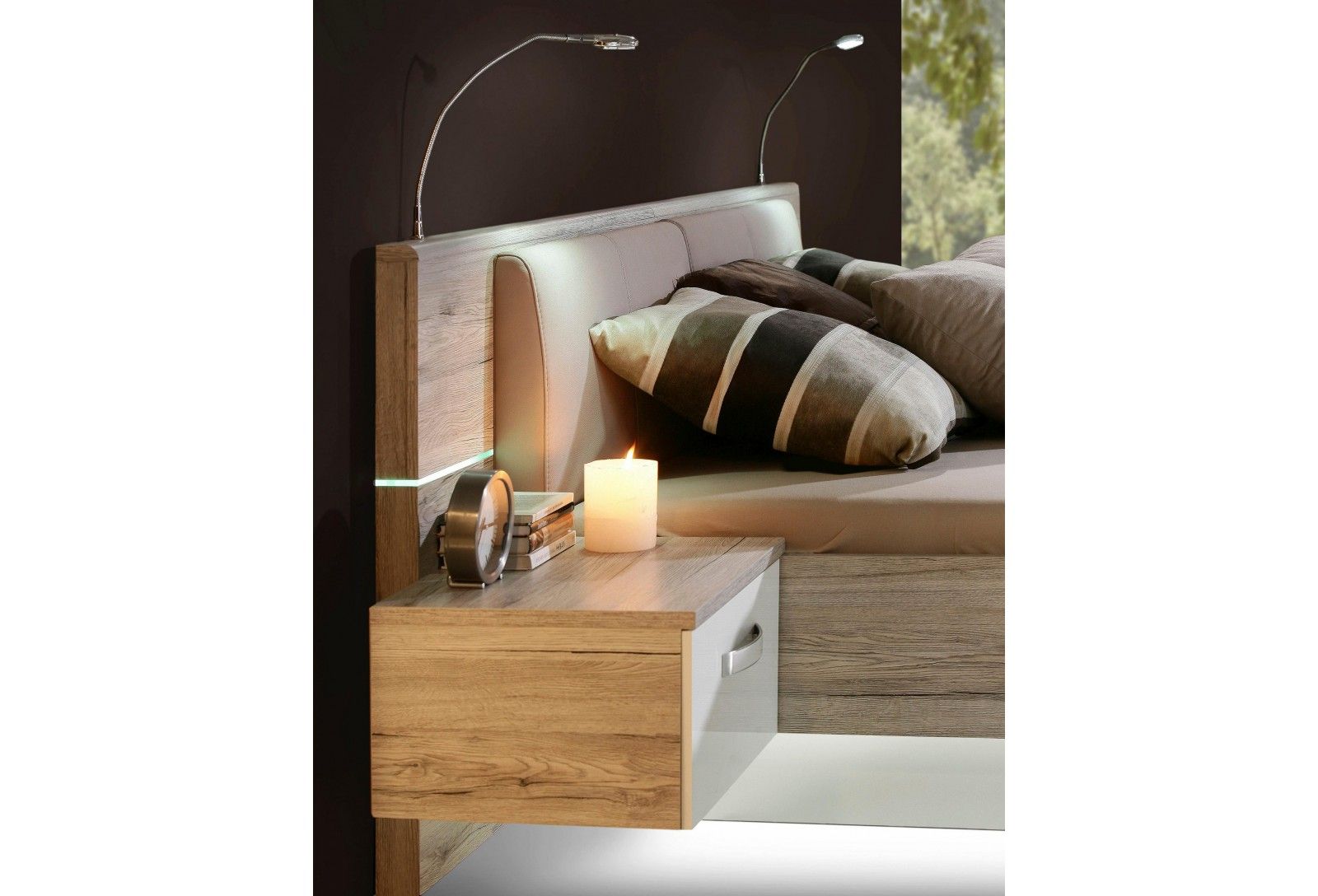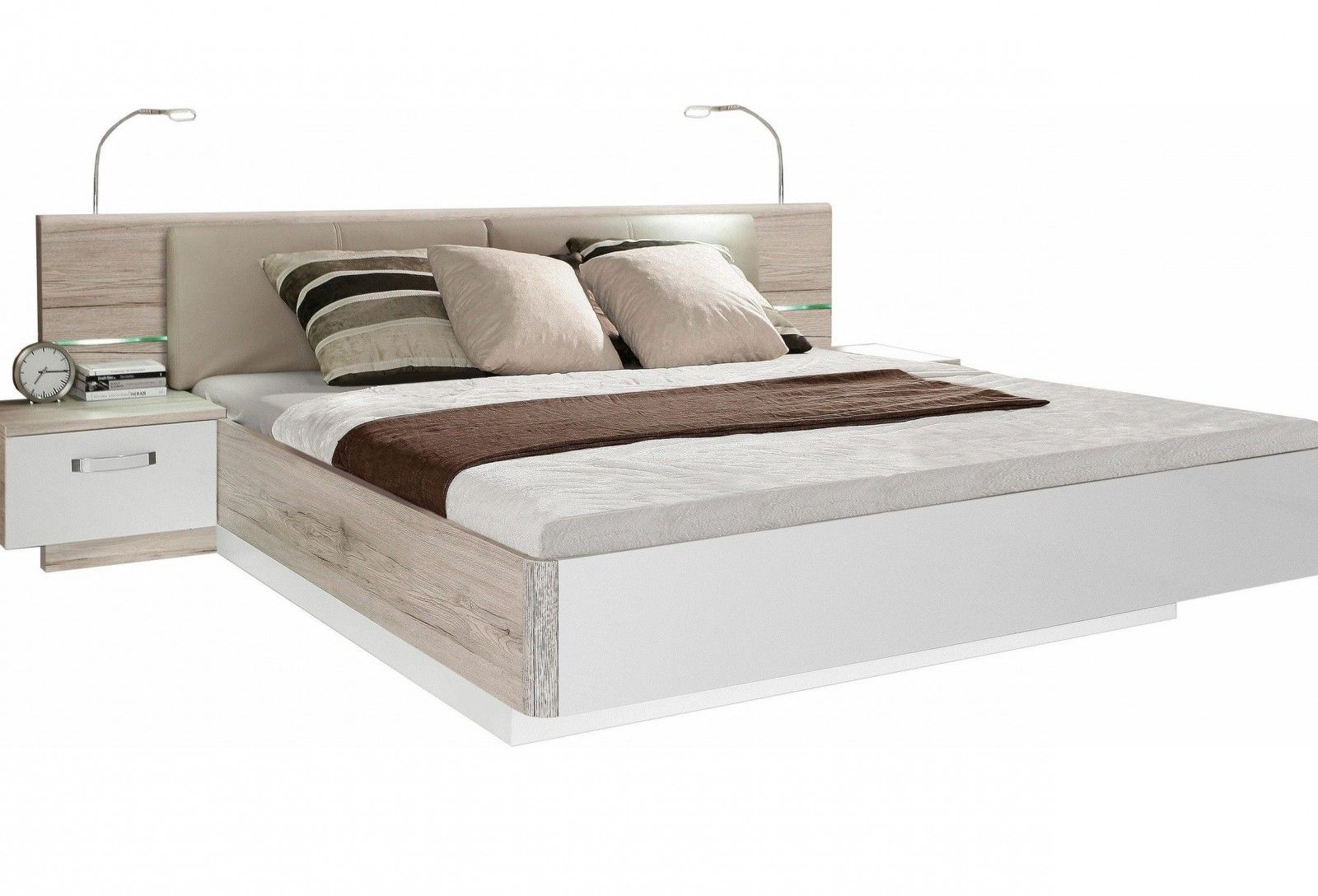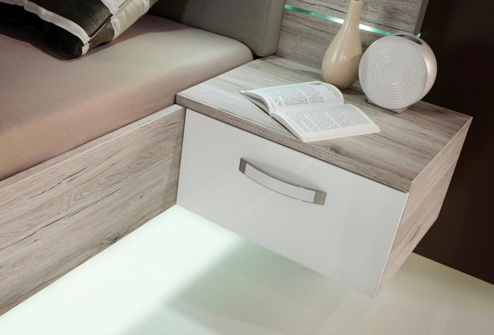 Postelja + nočni omarici z LED lučkami