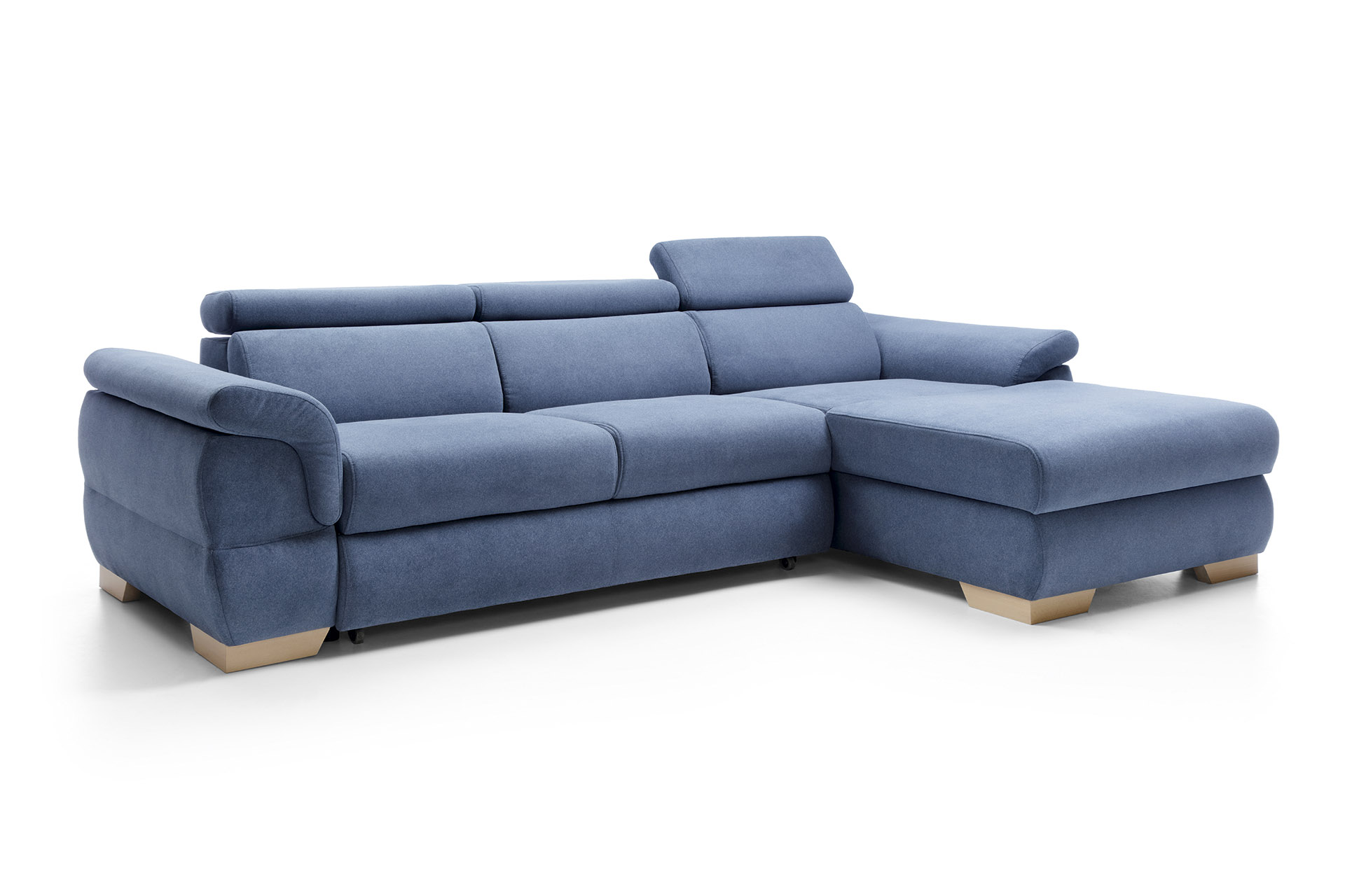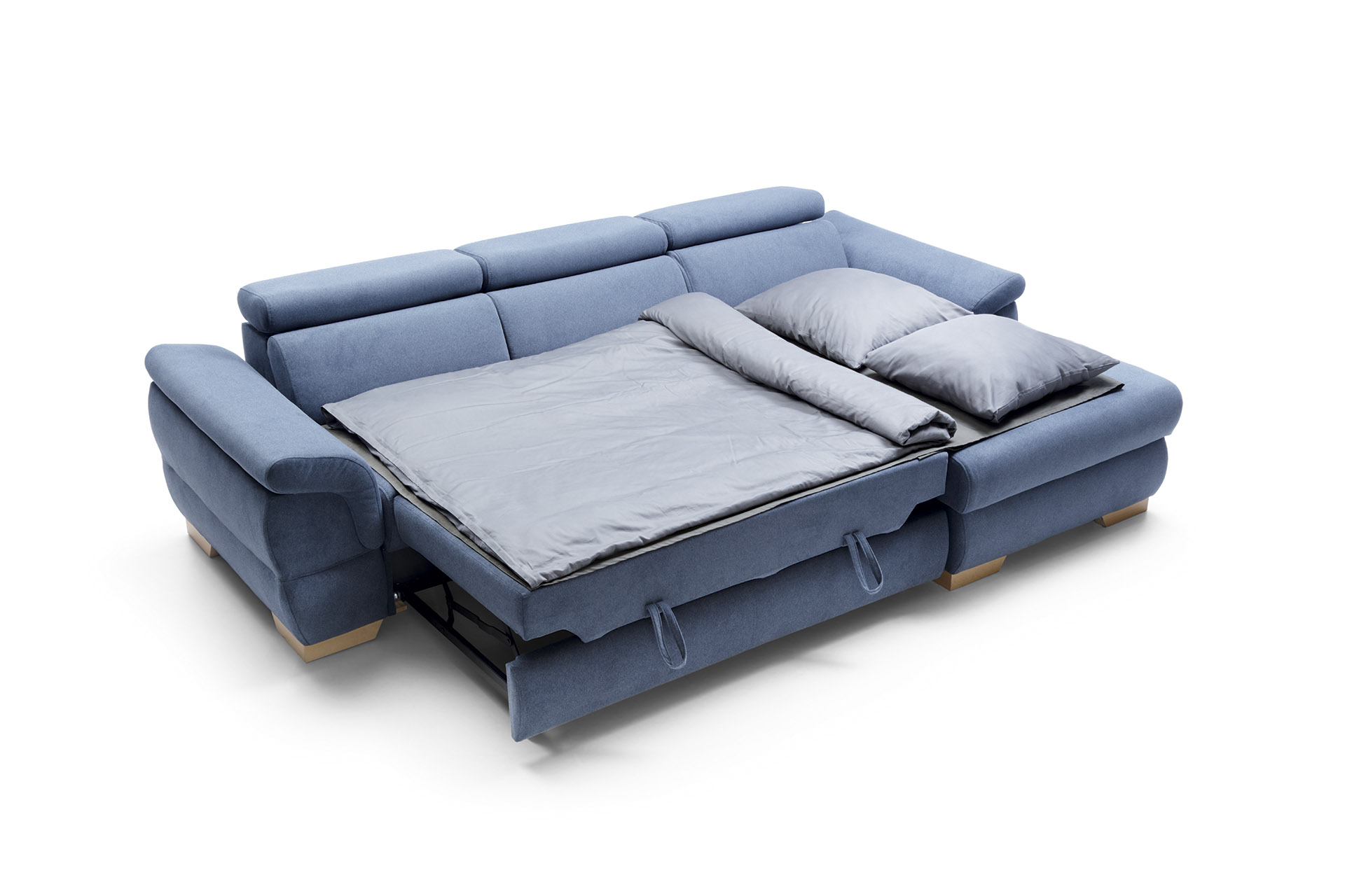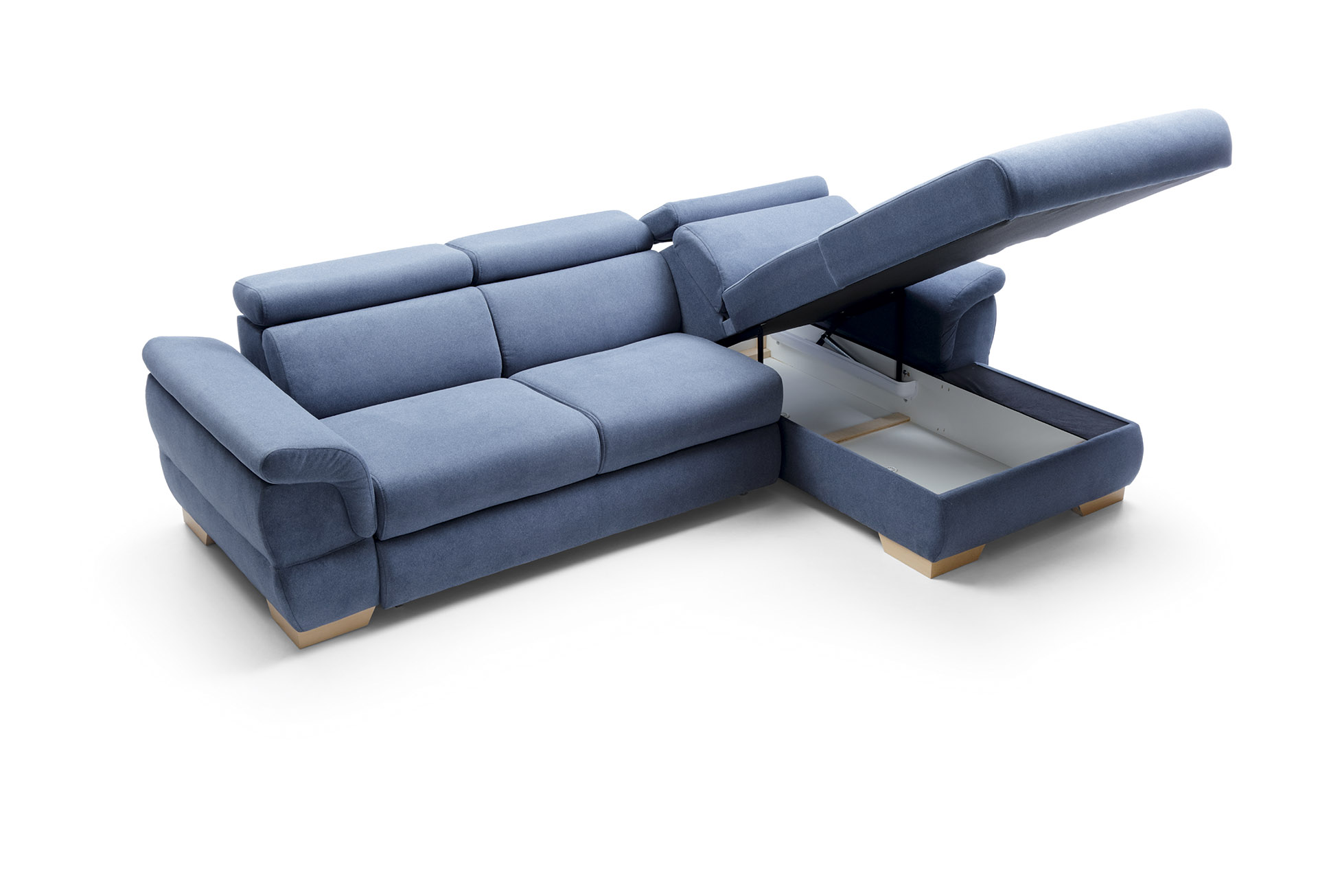 Vendar pa modularna kotna sedežna garnitura skriva številne ugodnosti, ki zagotovo izboljšajo udobje počitka. Neodvisno nastavljivi vzglavniki, izvlečno leseno stojalo in moduli so rešitev za današnji čas. Vgrajen predal za posteljnino in velik naslanjač sta dodatni lastnosti, zaradi katerih je uporaba te sedežne garniture še bolj prijetna.