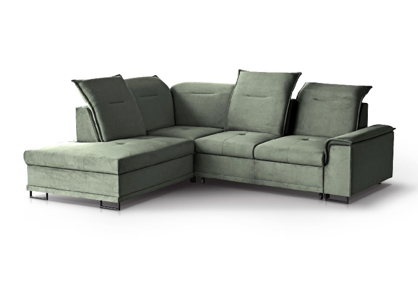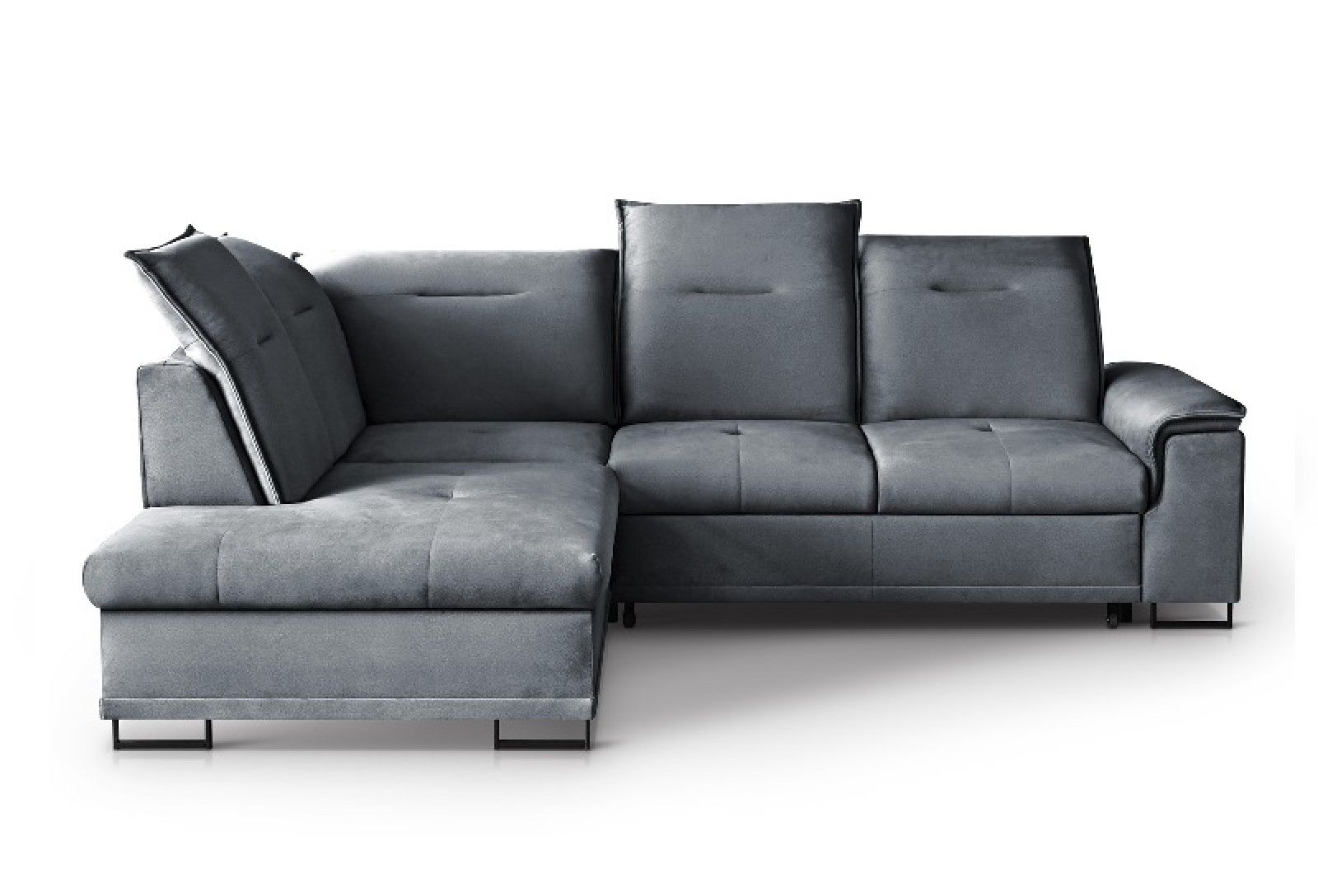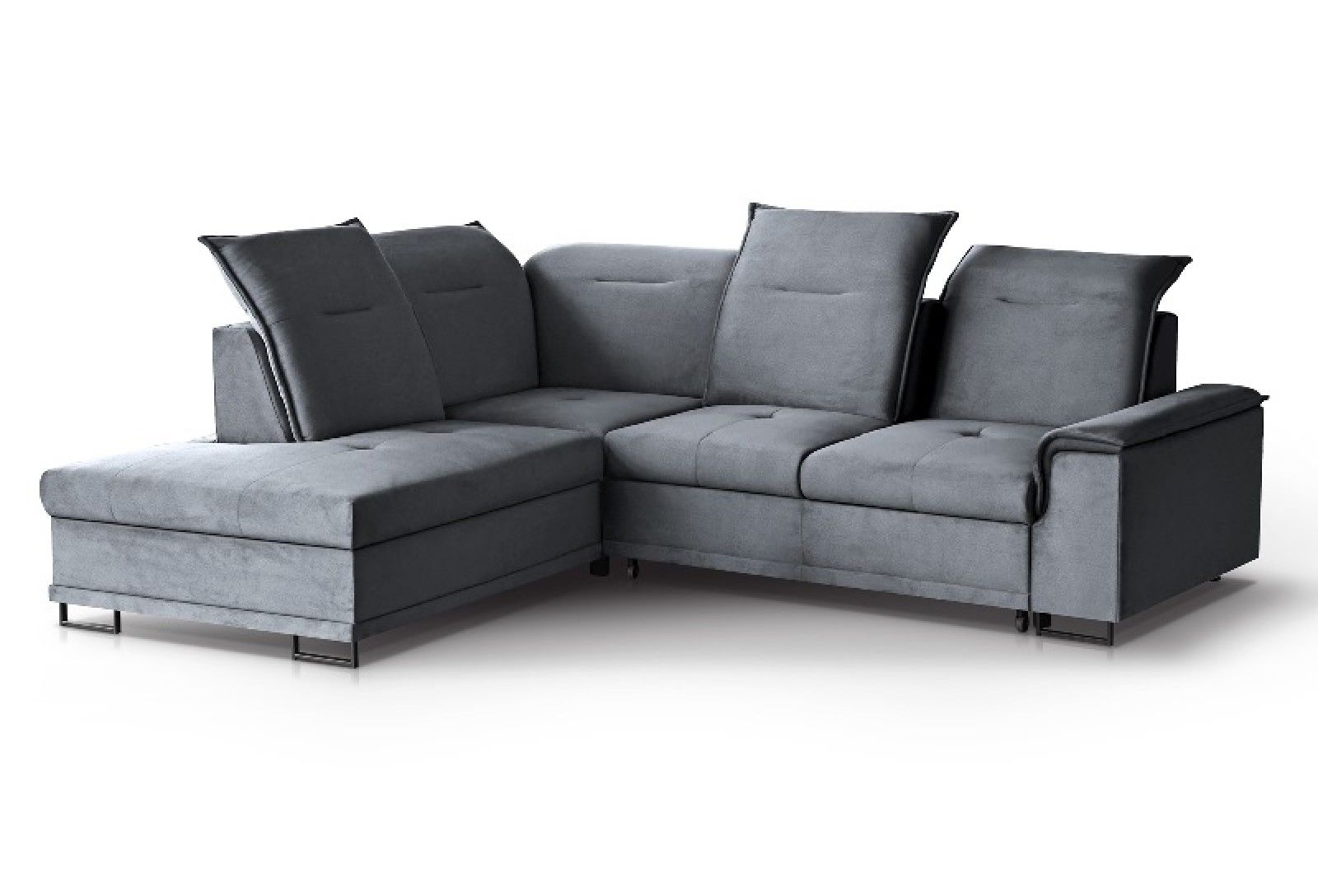 Bruno L je udobna kotna sedežna garnitura z možnostjo nastavitve vzglavnika in hrbtišča.