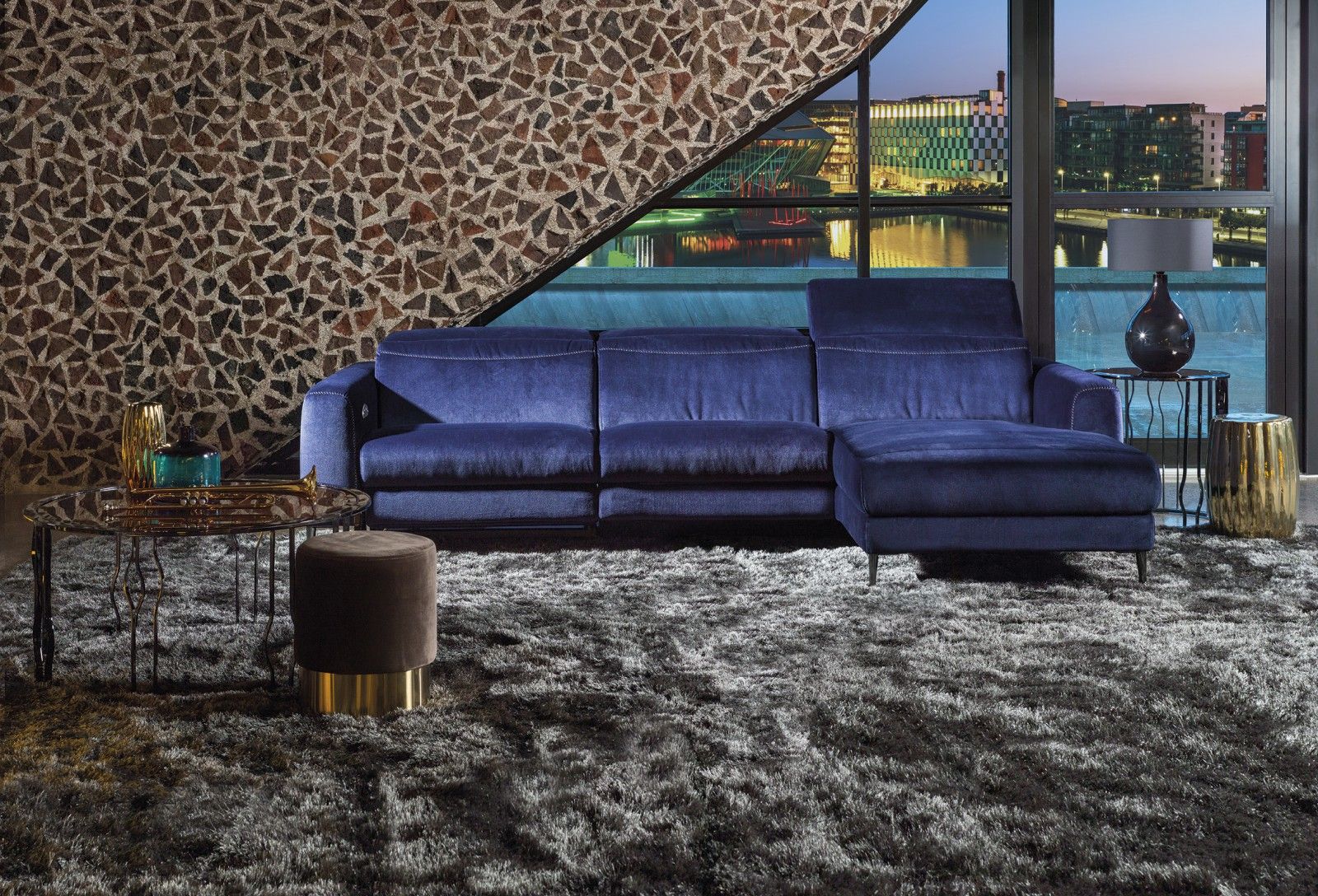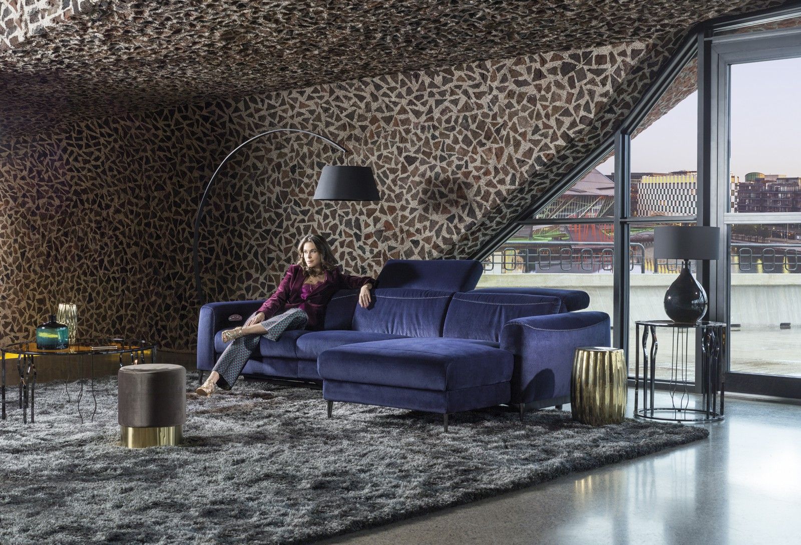 Ta sedežna garnitura je bila razvita z pozornostjo do podrobnosti in prefinjenosti. Njene sproščujoče lastnosti so nesporne. Naslonjala so opremljena z nastavljivimi vzglavniki, medtem ko je udobje, ki ga ponuja celotna garnitura, tako očitno kot njena lepota.