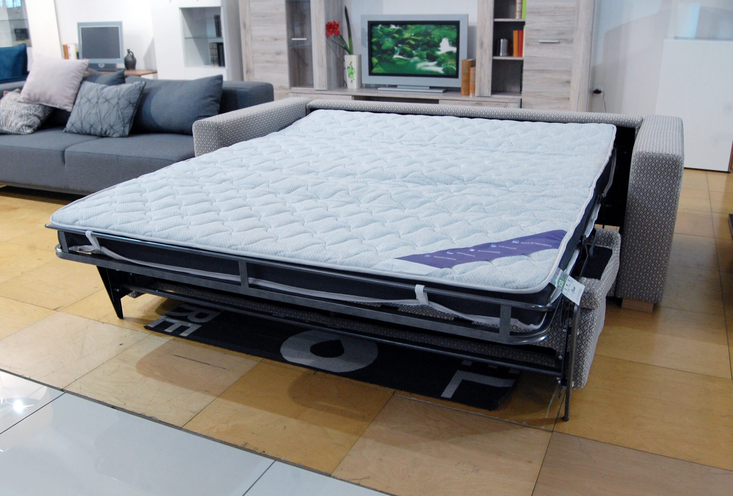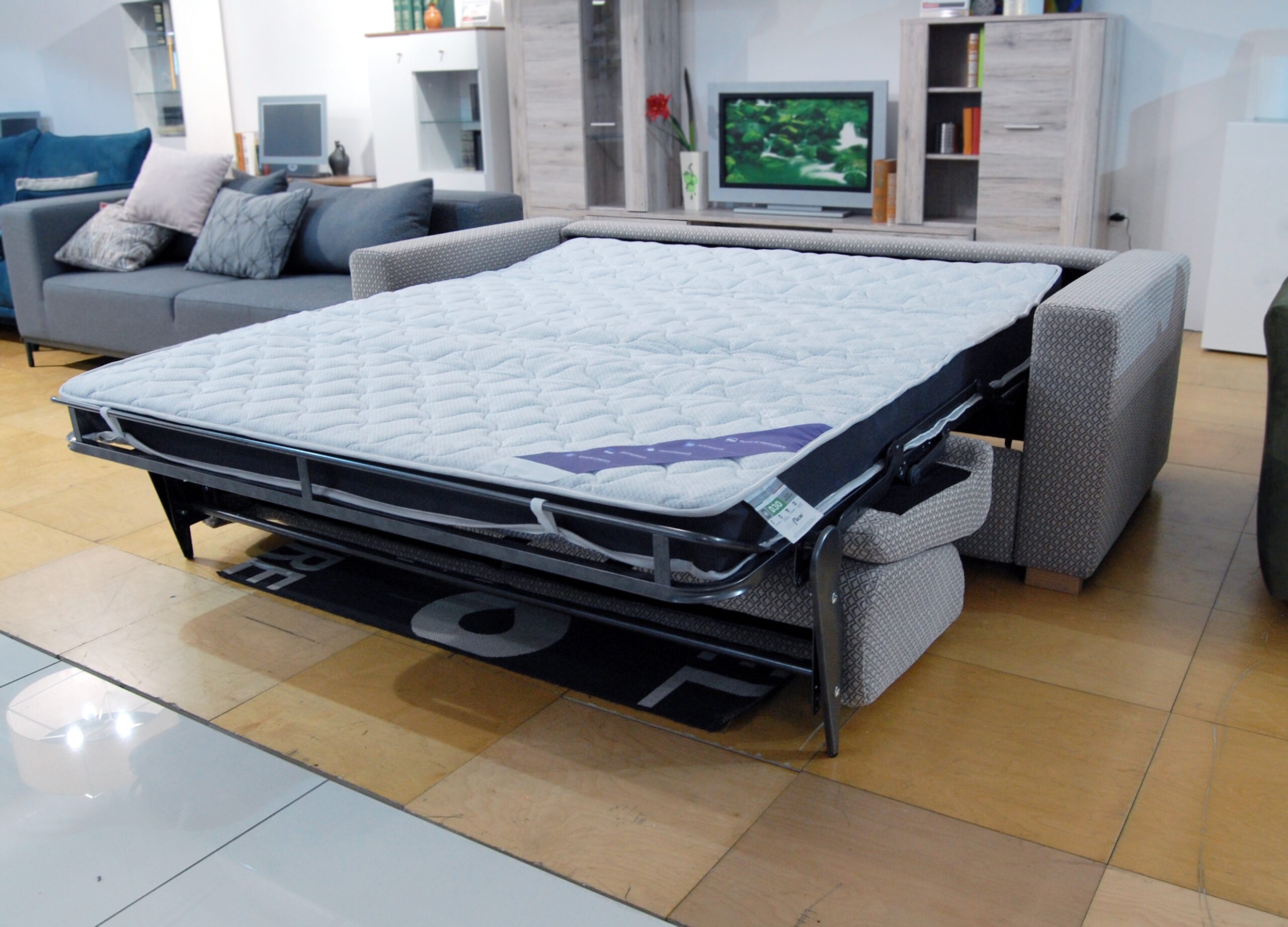 Kavč z raztegljivim ležiščem in vzmetnico. Z avtomatskim sistemom zlaganja.